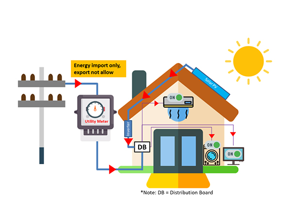 - Electricity is being generated for own usage and any excess is not allowed to be exported to the grid.